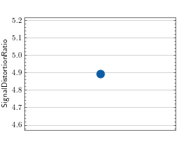 >>> # Example plotting a single value >>> import torch >>> from torchmetrics.audio import SignalDistortionRatio >>> metric = SignalDistortionRatio() >>> metric.update(torch.rand(8000), torch.rand(8000)) >>> fig_, ax_ = metric.plot()