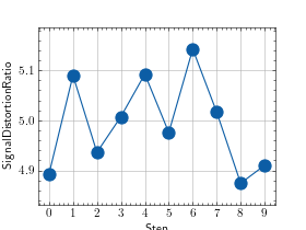 >>> # Example plotting multiple values >>> import torch >>> from torchmetrics.audio import SignalDistortionRatio >>> metric = SignalDistortionRatio() >>> values = [ ] >>> for _ in range(10): ... values.append(metric(torch.rand(8000), torch.rand(8000))) >>> fig_, ax_ = metric.plot(values)
