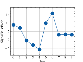 >>> # Example plotting multiple values >>> import torch >>> from torchmetrics.audio import SignalNoiseRatio >>> metric = SignalNoiseRatio() >>> values = [ ] >>> for _ in range(10): ... values.append(metric(torch.rand(4), torch.rand(4))) >>> fig_, ax_ = metric.plot(values)
