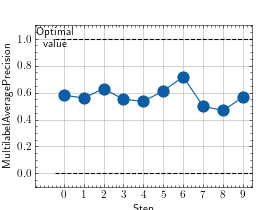 >>> # Example plotting multiple values >>> import torch >>> from torchmetrics.classification import MultilabelAveragePrecision >>> metric = MultilabelAveragePrecision(num_labels=3) >>> values = [ ] >>> for _ in range(10): ... values.append(metric(torch.rand(20,3), torch.randint(2, (20,3)))) >>> fig_, ax_ = metric.plot(values)