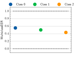 >>> # Example plotting a single >>> import torch >>> from torchmetrics.classification import MulticlassEER >>> metric = MulticlassEER(num_classes=3) >>> metric.update(torch.randn(20, 3), torch.randint(3,(20,))) >>> fig_, ax_ = metric.plot()