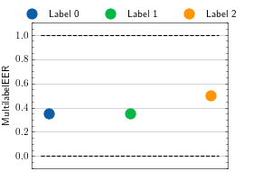 >>> # Example plotting a single >>> import torch >>> from torchmetrics.classification import MultilabelEER >>> metric = MultilabelEER(num_labels=3) >>> metric.update(torch.rand(20,3), torch.randint(2, (20,3))) >>> fig_, ax_ = metric.plot()