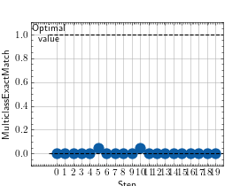 >>> # Example plotting multiple values >>> from torch import rand, randint >>> from torchmetrics.classification import MultilabelExactMatch >>> metric = MultilabelExactMatch(num_labels=3) >>> values = [ ] >>> for _ in range(10): ... values.append(metric(randint(2, (20, 3, 5)), randint(2, (20, 3, 5)))) >>> fig_, ax_ = metric.plot(values)