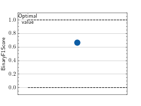 \[F_{1} = 2\frac{\text{precision} * \text{recall}}{(\text{precision}) + \text{recall}}\]The metric is only proper defined when \(\text{TP} + \text{FP} \neq 0 \wedge \text{TP} + \text{FN} \neq 0\) where \(\text{TP}\), \(\text{FP}\) and \(\text{FN}\) represent the number of true positives, false positives and false negatives respectively. If this case is encountered a score of zero_division (0 or 1, default is 0) is returned.