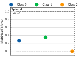 >>> from torch import randint >>> # Example plotting a single value per class >>> from torchmetrics.classification import MulticlassF1Score >>> metric = MulticlassF1Score(num_classes=3, average=None) >>> metric.update(randint(3, (20,)), randint(3, (20,))) >>> fig_, ax_ = metric.plot()