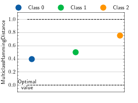 >>> # Example plotting a single value per class >>> from torch import randint >>> from torchmetrics.classification import MulticlassHammingDistance >>> metric = MulticlassHammingDistance(num_classes=3, average=None) >>> metric.update(randint(3, (20,)), randint(3, (20,))) >>> fig_, ax_ = metric.plot()