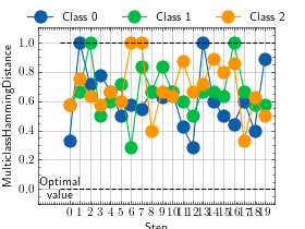 >>> # Example plotting multiple values >>> from torch import rand, randint >>> from torchmetrics.classification import MultilabelHammingDistance >>> metric = MultilabelHammingDistance(num_labels=3) >>> values = [ ] >>> for _ in range(10): ... values.append(metric(randint(2, (20, 3)), randint(2, (20, 3)))) >>> fig_, ax_ = metric.plot(values)