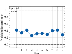 >>> # Example plotting multiple values >>> from torch import rand, randint >>> from torchmetrics.classification import MultilabelJaccardIndex >>> metric = MultilabelJaccardIndex(num_labels=3) >>> values = [ ] >>> for _ in range(10): ... values.append(metric(randint(2, (20, 3)), randint(2, (20, 3)))) >>> fig_, ax_ = metric.plot(values)