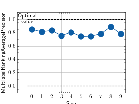 >>> from torch import rand, randint >>> # Example plotting multiple values >>> from torchmetrics.classification import MultilabelRankingAveragePrecision >>> metric = MultilabelRankingAveragePrecision(num_labels=3) >>> values = [ ] >>> for _ in range(10): ... values.append(metric(rand(20, 3), randint(2, (20, 3)))) >>> fig_, ax_ = metric.plot(values)
