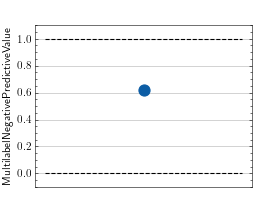\[\text{Negative Predictive Value} = \frac{\text{TN}}{\text{TN} + \text{FN}}\]Where \(\text{TN}\) and \(\text{FN}\) represent the number of true negatives and false negatives respectively. The metric is only proper defined when \(\text{TN} + \text{FN} \neq 0\). If this case is encountered for any label, the metric for that label will be set to 0 and the overall metric may therefore be affected in turn.