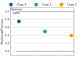 >>> from torch import randint >>> # Example plotting a single value per class >>> from torchmetrics.classification import MulticlassPrecision >>> metric = MulticlassPrecision(num_classes=3, average=None) >>> metric.update(randint(3, (20,)), randint(3, (20,))) >>> fig_, ax_ = metric.plot()