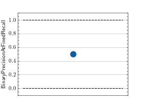 >>> from torch import rand, randint >>> # Example plotting a single value >>> from torchmetrics.classification import BinaryPrecisionAtFixedRecall >>> metric = BinaryPrecisionAtFixedRecall(min_recall=0.5) >>> metric.update(rand(10), randint(2,(10,))) >>> fig_, ax_ = metric.plot() # the returned plot only shows the maximum recall value by default