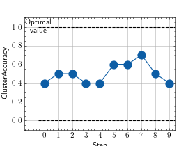>>> # Example plotting multiple values >>> import torch >>> from torchmetrics.clustering import ClusterAccuracy >>> metric = ClusterAccuracy(num_classes=4) >>> values = [ ] >>> for _ in range(10): ... values.append(metric(torch.randint(0, 4, (10,)), torch.randint(0, 4, (10,)))) >>> fig_, ax_ = metric.plot(values)