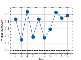 >>> # Example plotting multiple values >>> import torch >>> from torchmetrics.clustering import MutualInfoScore >>> metric = MutualInfoScore() >>> values = [ ] >>> for _ in range(10): ... values.append(metric(torch.randint(0, 4, (10,)), torch.randint(0, 4, (10,)))) >>> fig_, ax_ = metric.plot(values)
