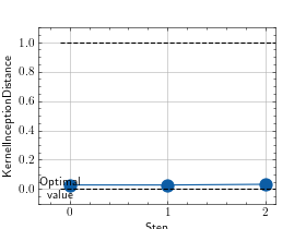 \[KID = MMD(f_{real}, f_{fake})^2\]where \(MMD\) is the maximum mean discrepancy and \(I_{real}, I_{fake}\) are extracted features from real and fake images, see kid ref1 for more details. In particular, calculating the MMD requires the evaluation of a polynomial kernel function \(k\)