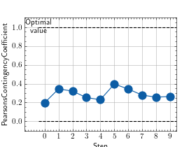 >>> # Example plotting multiple values >>> import torch >>> from torchmetrics.nominal import PearsonsContingencyCoefficient >>> metric = PearsonsContingencyCoefficient(num_classes=5) >>> values = [ ] >>> for _ in range(10): ... values.append(metric(torch.randint(0, 4, (100,)), torch.randint(0, 4, (100,)))) >>> fig_, ax_ = metric.plot(values)